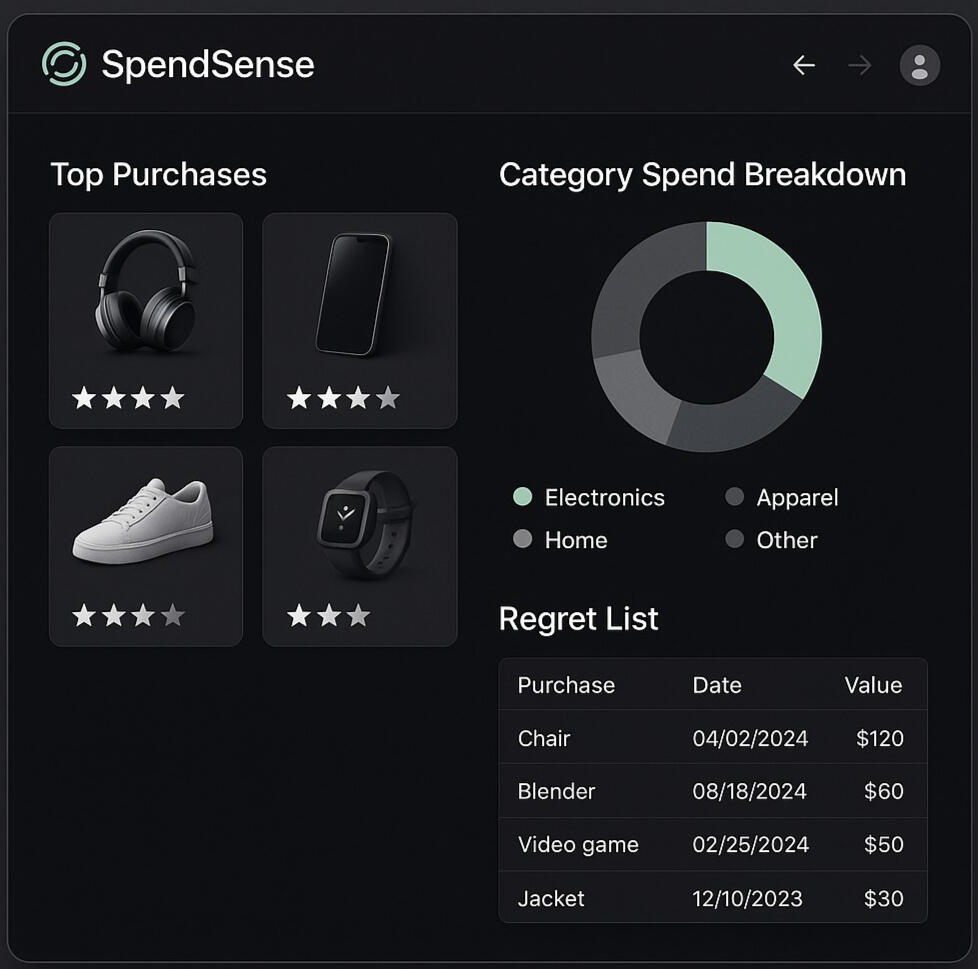 SpendSense is a free Chrome extension that helps you track what you buy and how you feel about it over time, so you can spend smarter and regret less.